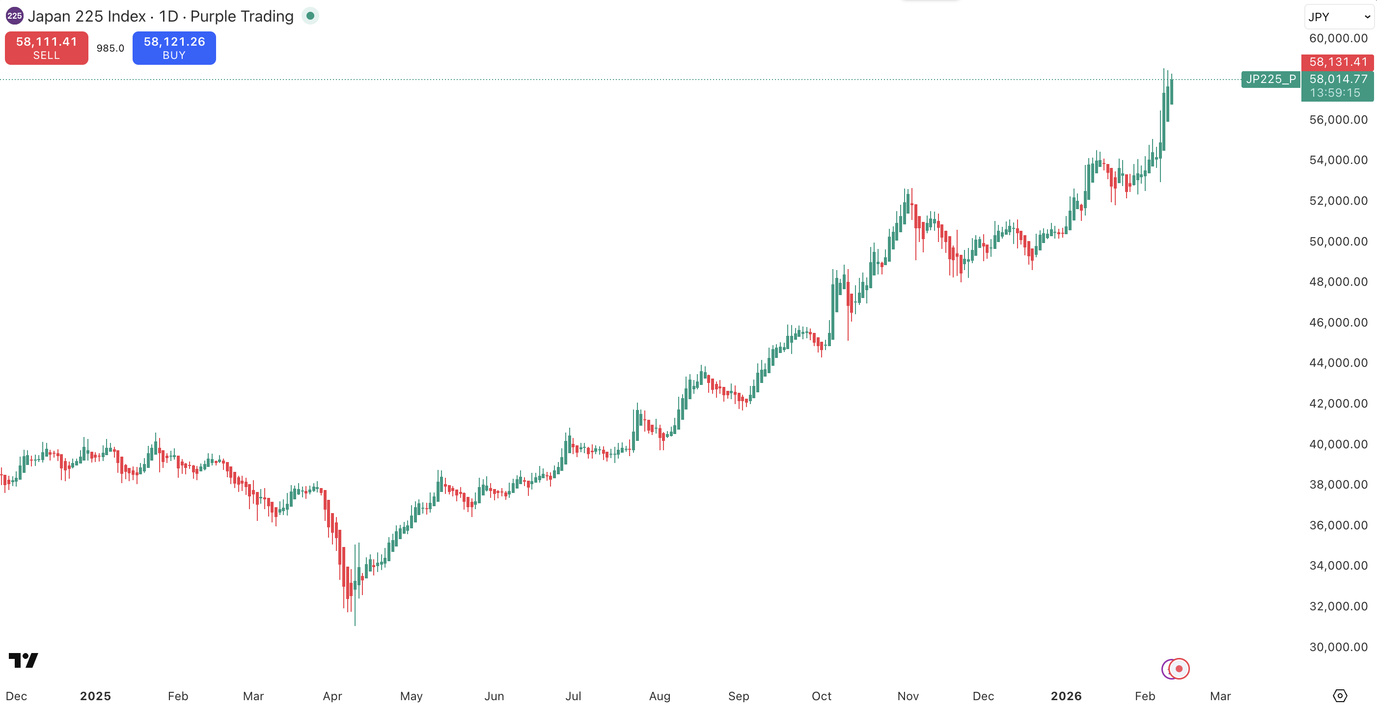 Akciový index Nikkei 225, zdroj: TradingView