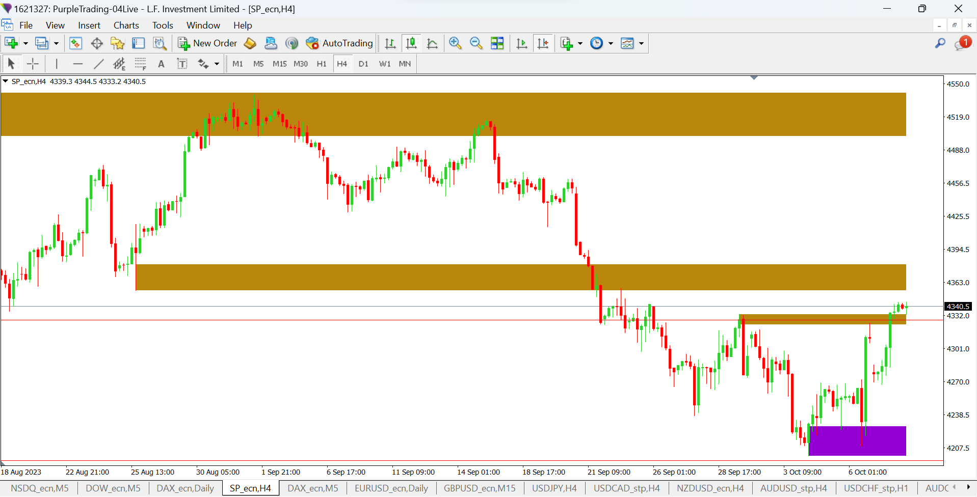 Graf č.1: Index SP500 na H4 časovém rámci