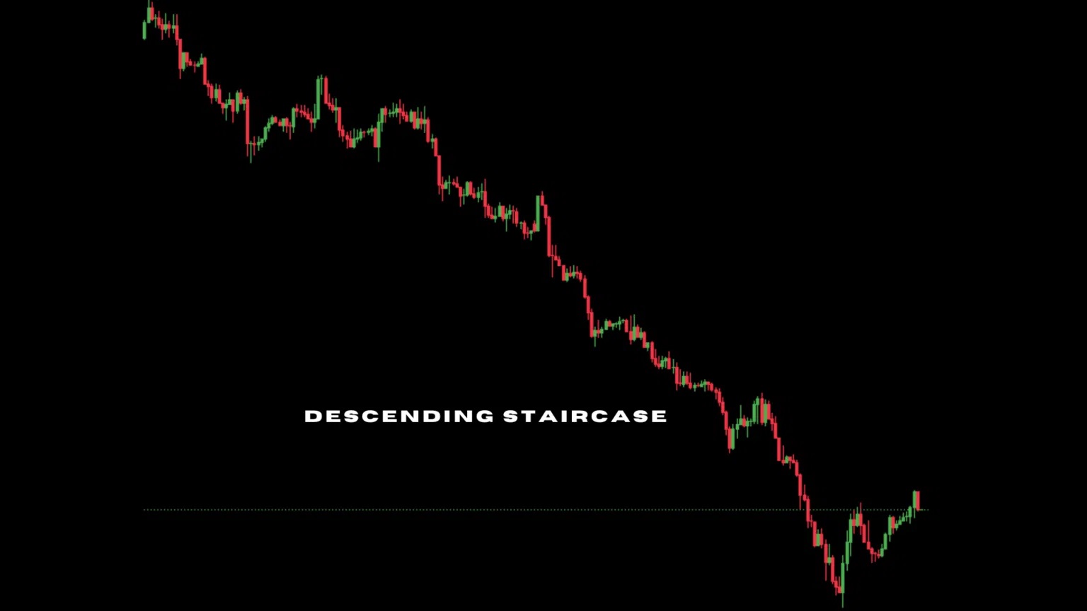 - Klesající schody: série nižších maxim a minim → medvědí trend.