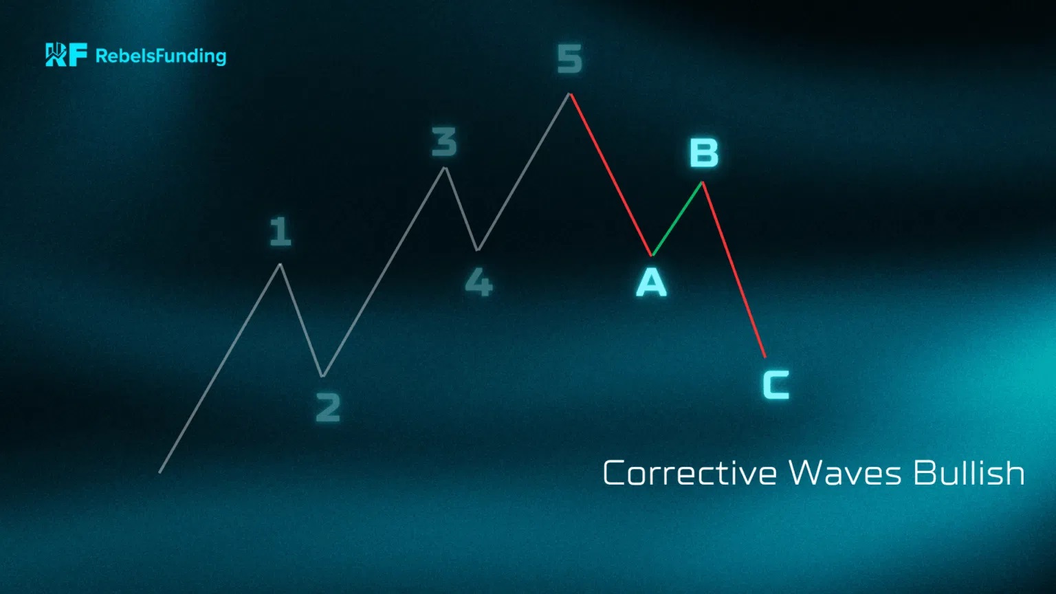 - 2 a 4 – korekční vlny proti trendu