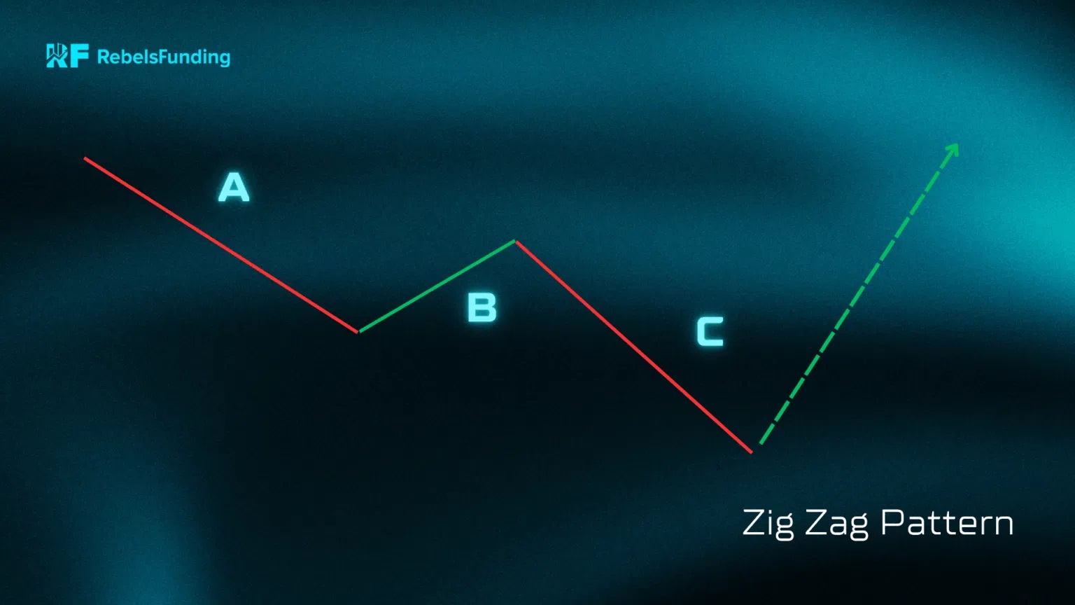 - Vlna C je pěti-vlnový impuls, který většinou končí poblíž nebo lehce za koncem vlny A.