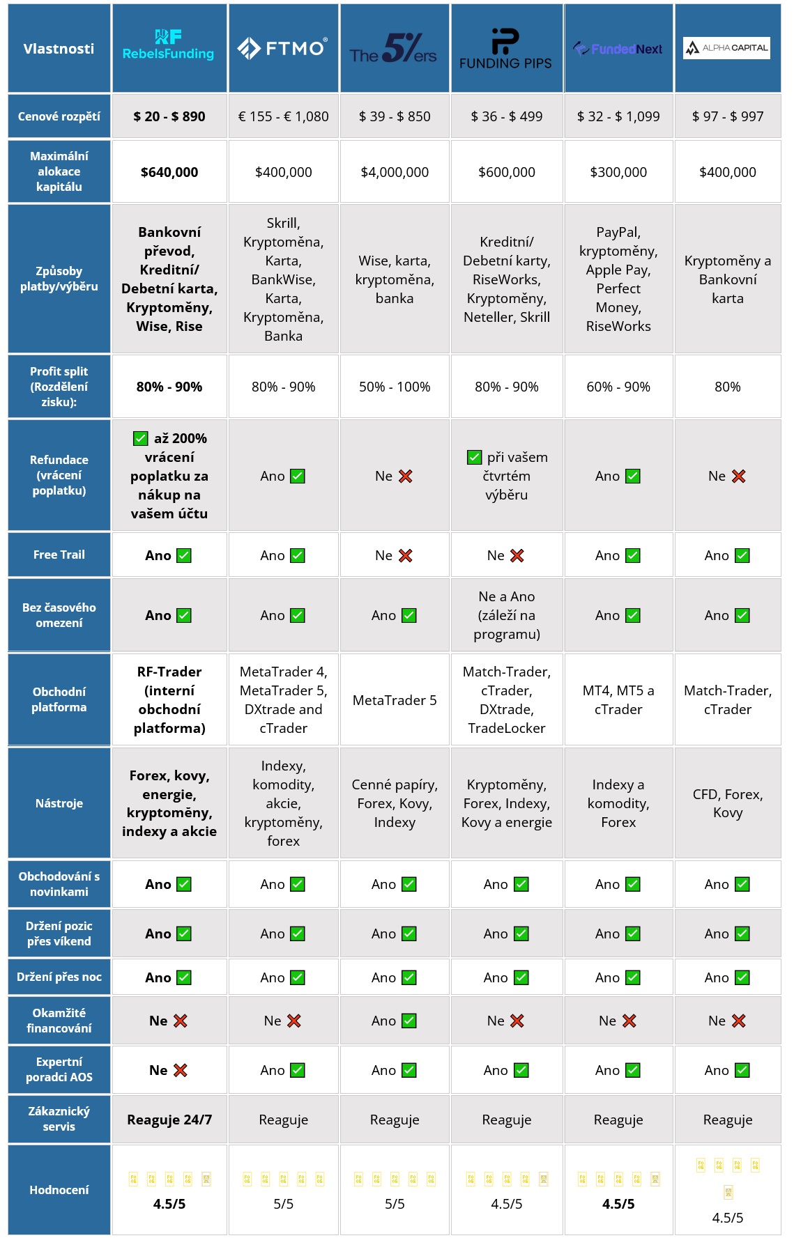 Zde jsou ty nejlepší financované obchodní programy, které byste měli zvážit (podrobné srovnání jejich funkcí, nabídek a služeb):