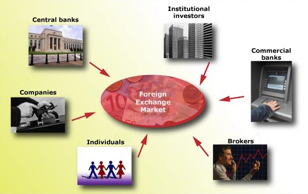 Na prvním místě jsou komerční banky a centrální banky. Jejich obrovské transakce, ekonomický vliv a poskytování likvidity z nich dělají nejmocnější účastníky.
