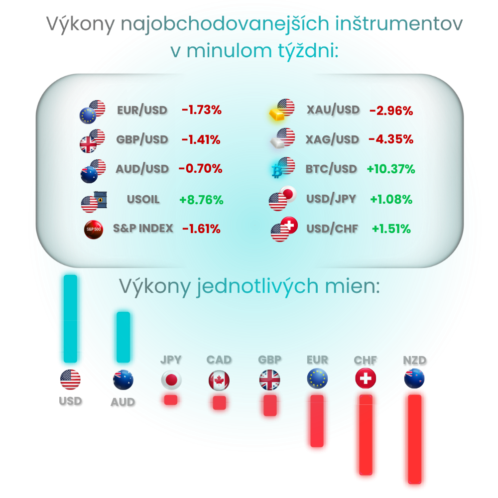 Popri tom sa výrazne hýbu aj meny ako kanadský dolár a japonský jen. CAD je citlivý najmä na vývoj cien ropy a energií, takže pri raste energetického trhu dokáže reagovať veľmi prudko. Jen je zas tradične pod drobnohľadom v momentoch, keď sa mení nálada na trhu a rastie tlak na menovú politiku v Japonsku. Práve preto patria CAD aj JPY aktuálne medzi meny, na ktorých vidno najviac pohybu a najväčšiu nervozitu.