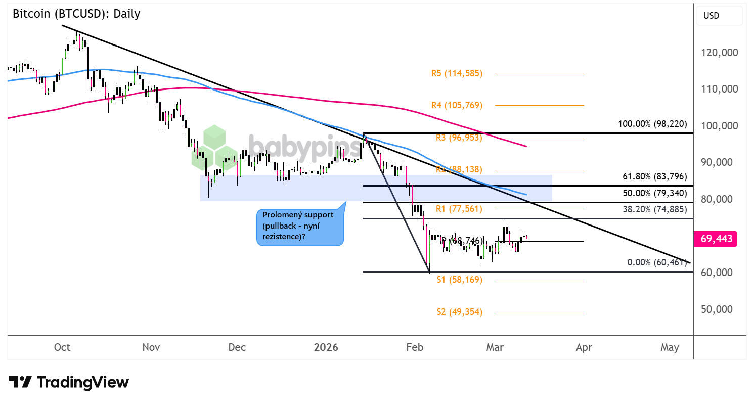 Vývoj BTC/USD (denní graf – D1):