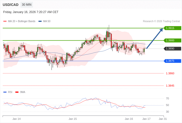 Preferovaný scénář: Dlouhé (long) pozice nad 1,3875 s cílem na 1,3900 a dále pak až na 1,3915.