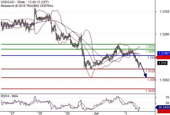 Komentář: Průraz pod hladinu 1,3180 je negativní signál, který by mohl umožnit pokles směrem k hladině 1,3125.