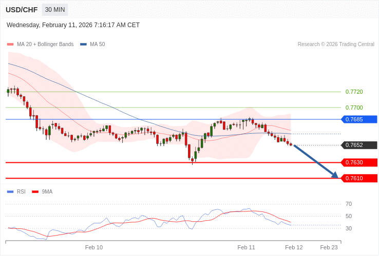 USD/CHF - Intradenní výhled 11.2.2026