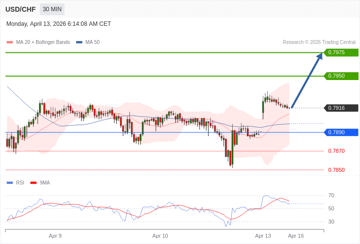 USD/CHF - Intradenní výhled 13.4.2026