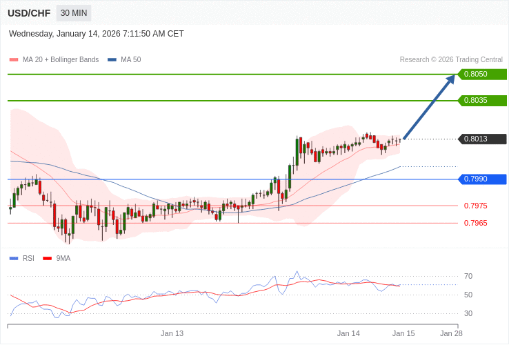 USD/CHF - Intradenní výhled 14.1.2026