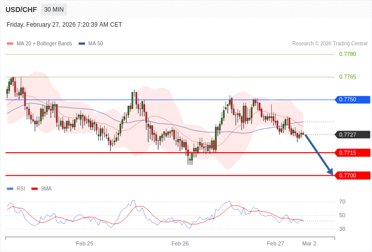 USD/CHF - Intradenní výhled 27.2.2026