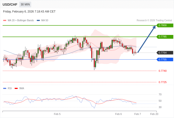 USD/CHF - Intradenní výhled 6.2.2026