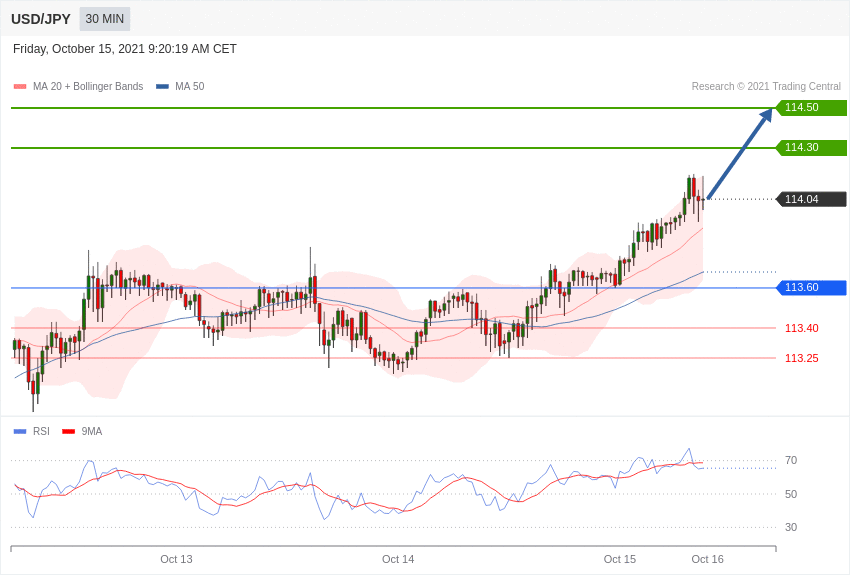 Preferovaný scénář: Dlouhé (long) pozice nad 113,60 s cílem na 114,30 a dále pak až na 114,50.