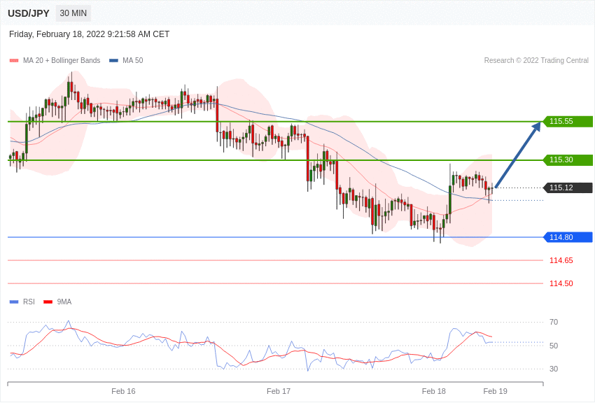 Preferovaný scénář: Dlouhé (long) pozice nad 114,80 s cílem na 115,30 a dále pak až na 115,55.