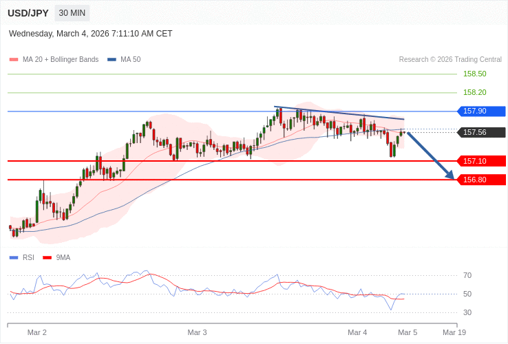 Klíčová slova: Intradenní výhled | USD/JPY | Pozice | Rezistence | Short | Trading | USD | JPY | Pivot | Trading Central | Supporty a rezistence | Výhled | Krátké (short) pozice | Růst | Potenciál | Rostoucí potenciál | 3М | Supporty |
