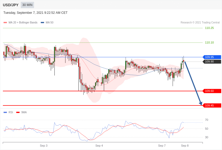 Alternativní scénář: Nad 109,95 je pravděpodobný růst na 110,10 a dále pak až na 110,25.