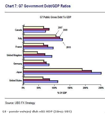 Podobná nejistota panuje ve fiskální politice jednotlivých zemí. Od roku 2007 mohutně narostly vládní rozpočty, kterými se snažily státy vykrýt slabost svých ekonomik. Veřejný dluh v poměru vůči hrubému domácímu produktu ukazuje na alarmující úrovně v několika zemích skupiny G7, například Japonsku, USA, Itálii nebo Velké Británii.