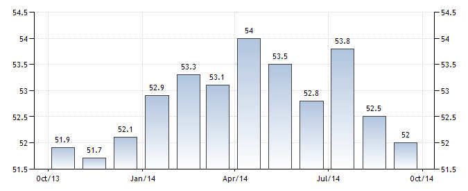 Po delší pauze bez evropských ekonomických dat dnes přicházejí ostře sledované indexy nákupních manažerů (PMI), které trhům napoví, jestli má eurozóna nakročeno do další recese či nikoliv. Od celkového kompozitního ukazatele se čeká pokles ze zářijových 52 bodů na 51,6 bodu. To je sice ještě bezpečně nad hranicí 50 bodů, která odděluje expanzi od recese, dílčí čísla z průmyslu však prozatím naznačovala, že pokles je za dveřmi.
