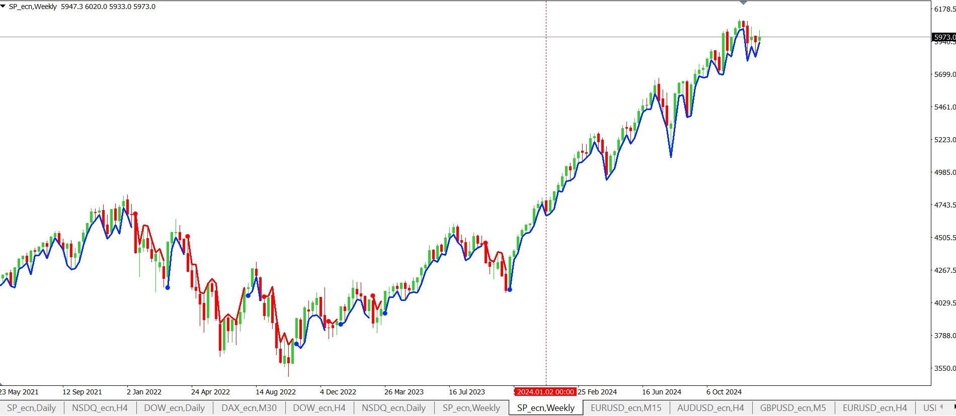 Na grafu máme tento index s naším unikátním trendovým indikátorem Purple Strike, který po celý rok 2024 naznačoval jasný býčí trend. Otázka je, zda může tato rally pokračovat?