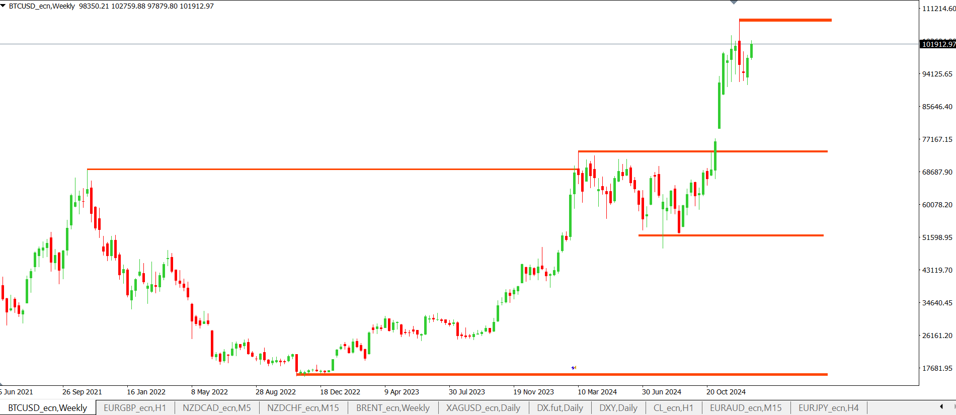 Bitcoin, jakožto dosud nejdůležitější kryptoměna, přesáhl magickou hranici 100 000 USD a dále se pohybuje v rostoucím trendu.