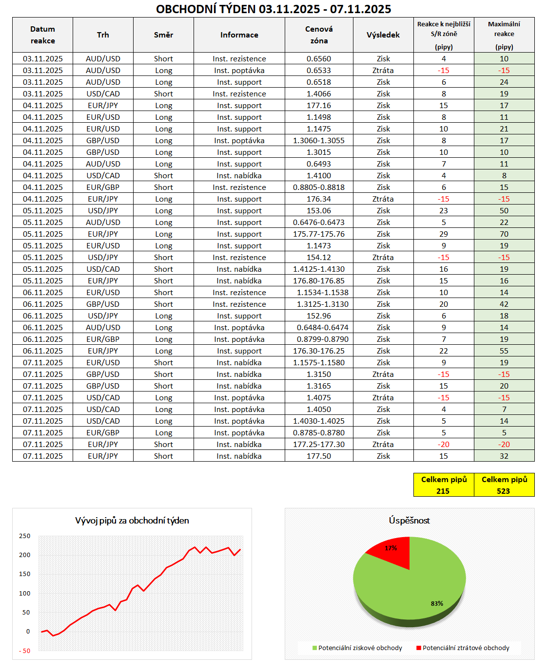VIP zóna FXstreet.cz: Obchodní příležitosti minulého týdne 03.11.2025 - 07.11.2025
