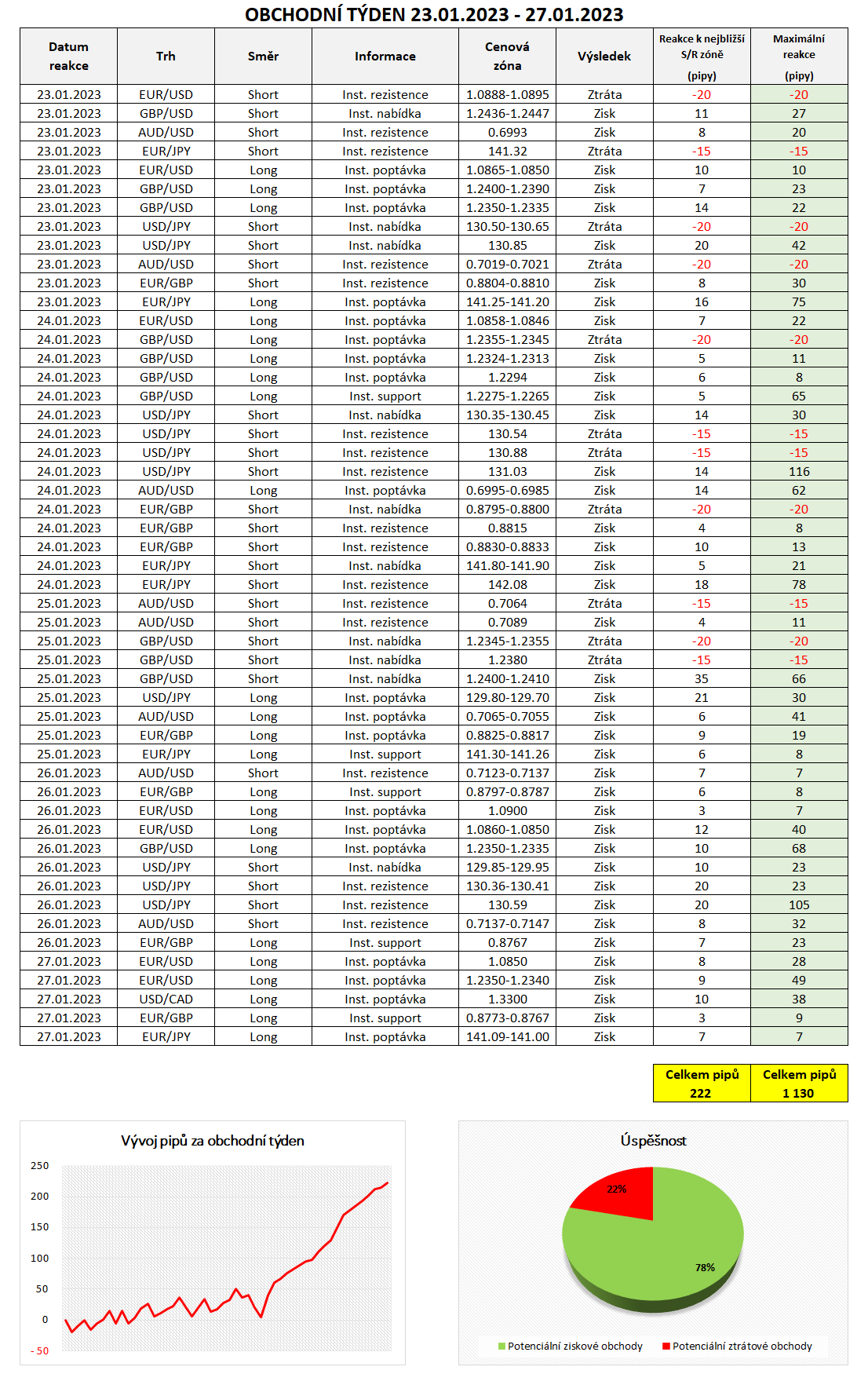 VIP zóna FXstreet.cz: Obchodní příležitosti minulého týdne 23.1.2023 - 27.1.2023