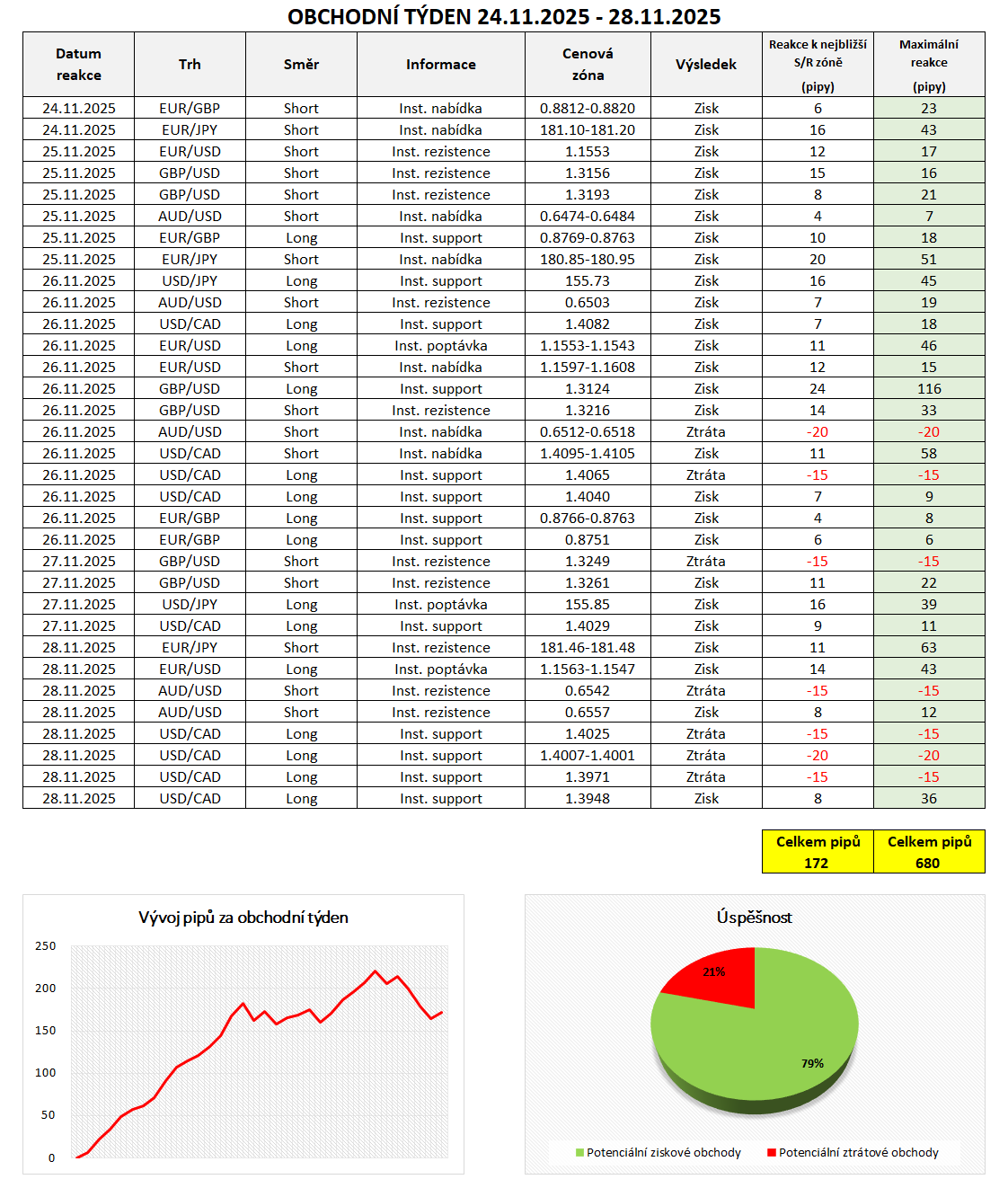 VIP zóna FXstreet.cz: Obchodní příležitosti minulého týdne 24.11.2025 - 28.11.2025