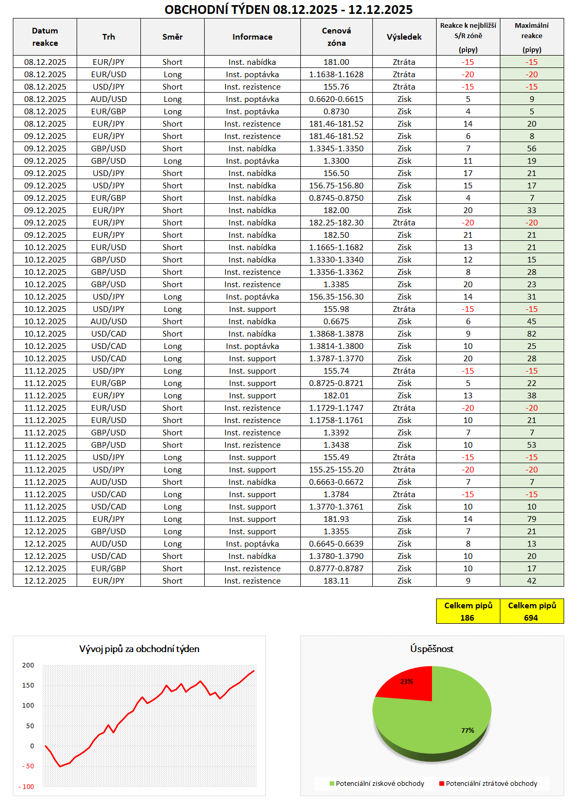 VIP zóna FXstreet.cz: Obchodní příležitosti minulého týdne 8.12.2025 - 12.12.2025