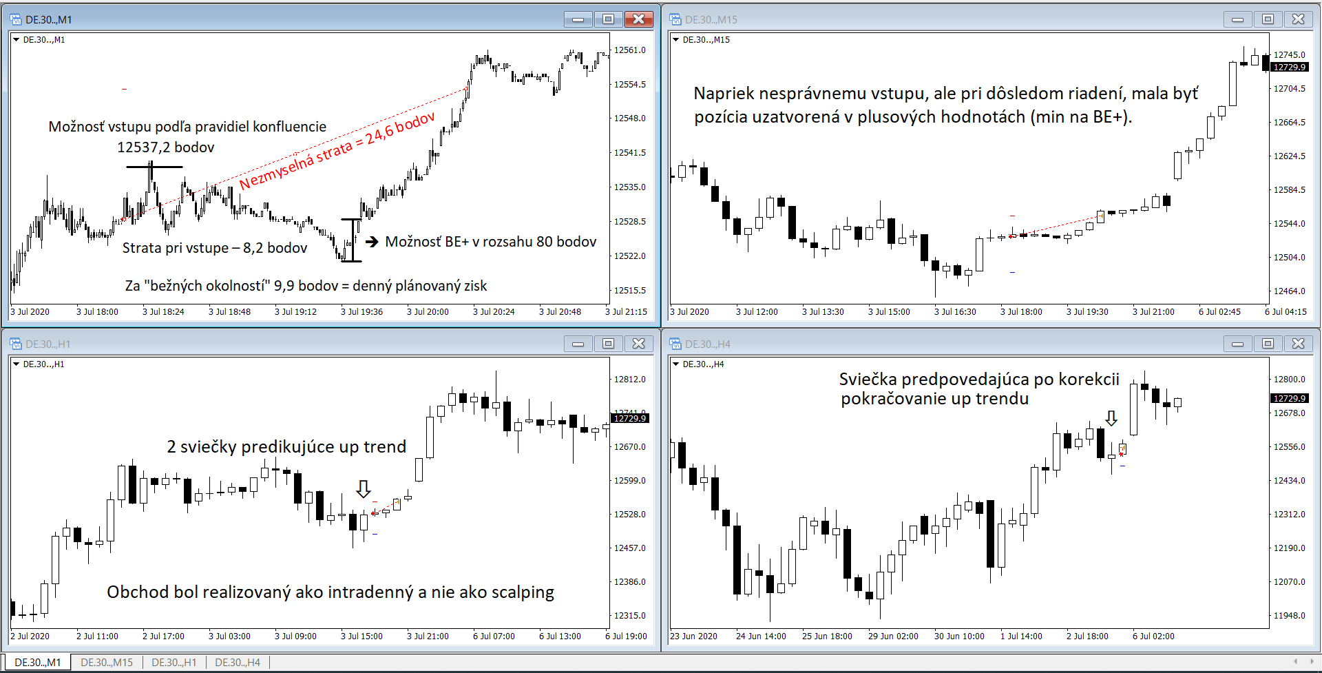 Na DAX väčšinou obchodujem skalpovacou metódou. Uvedený obchod som považoval za intradenný, čo som zohľadnil aj v menšom objeme. Uvedené čiastočne „ospravedlňuje“ niektoré moje nesprávne rozhodnutia.