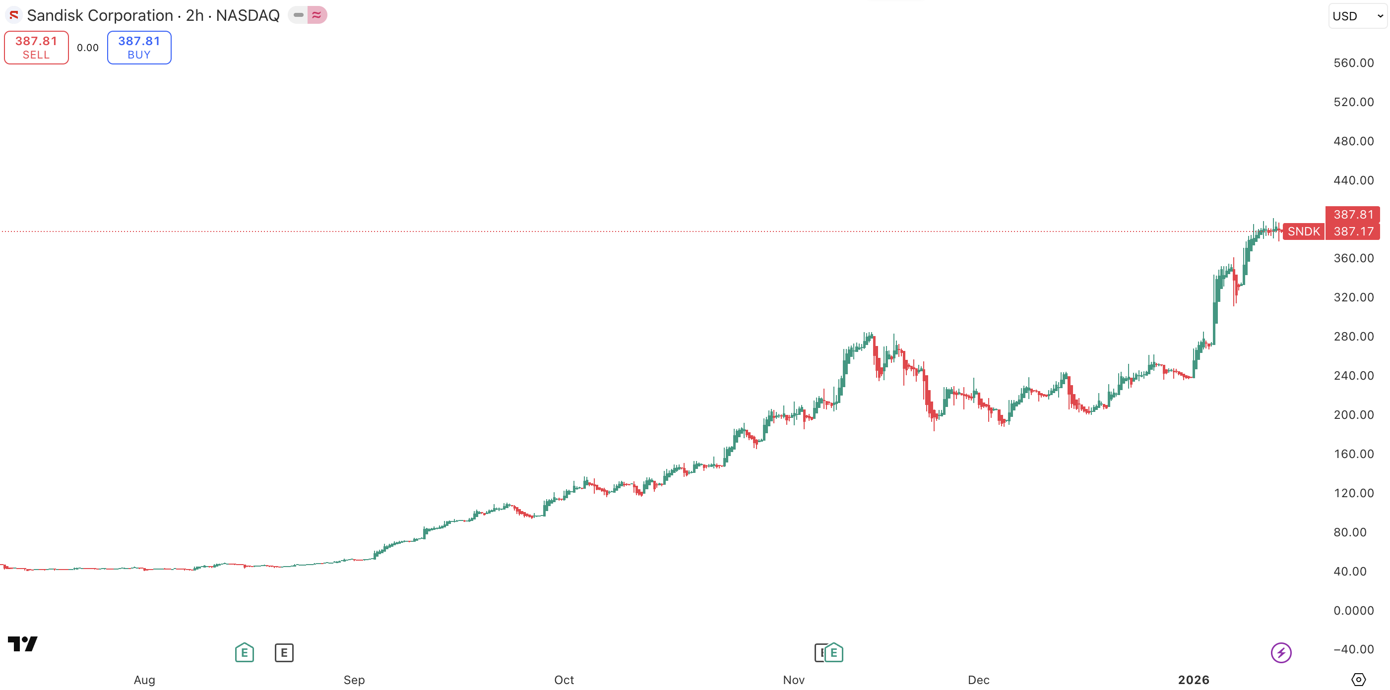 Akcie SanDisk, zdroj: TradingView
