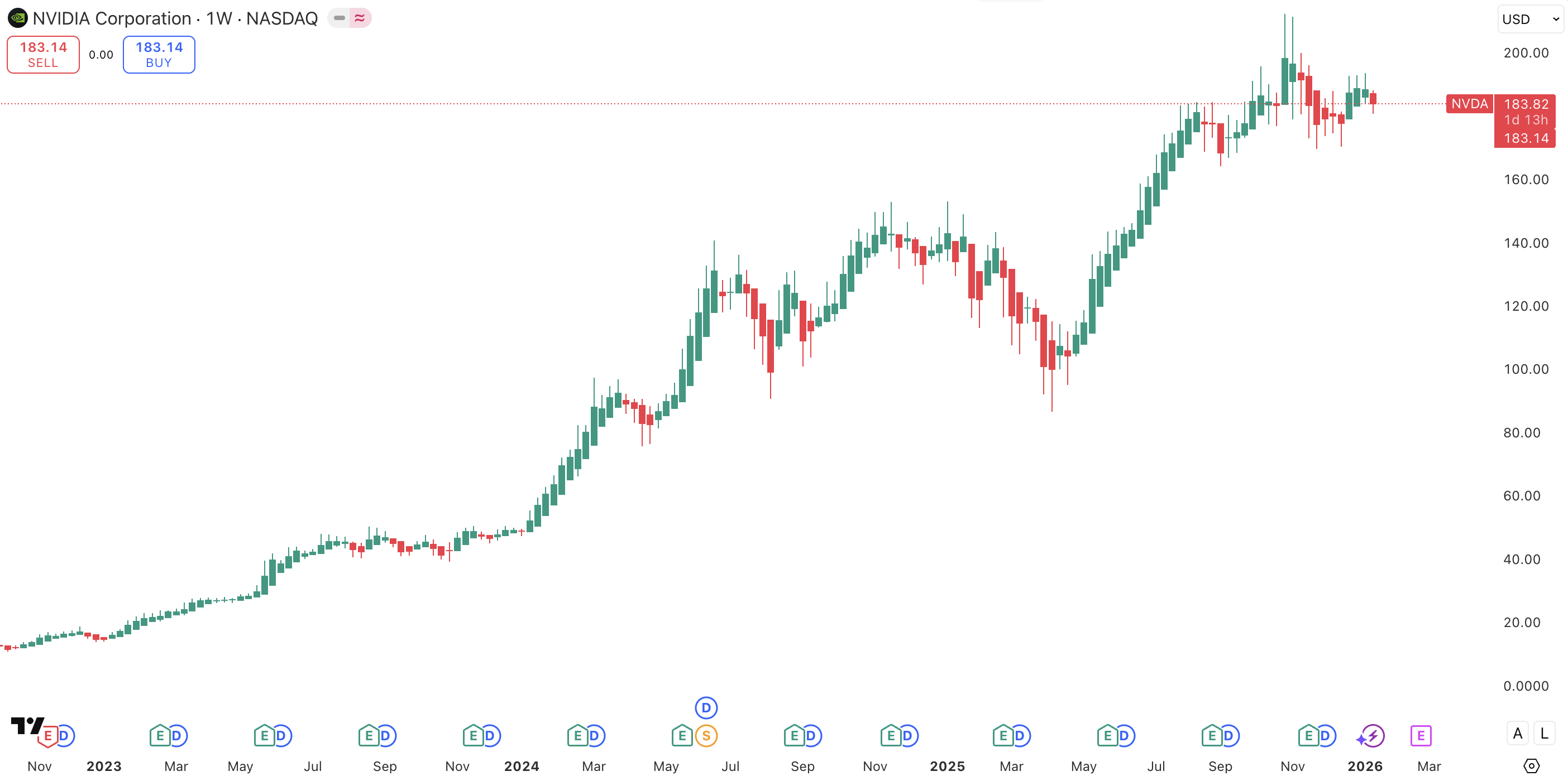 Akcie Nvidia, zdroj: TradingView (účet u Purple Trading)