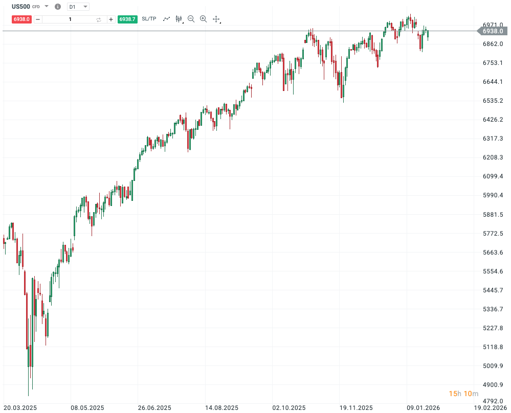 Vývoj ceny indexu S&P 500. Zdroj: Investiční aplikace XTB. Minulé výsledky nejsou spolehlivým ukazatelem budoucích výsledků.