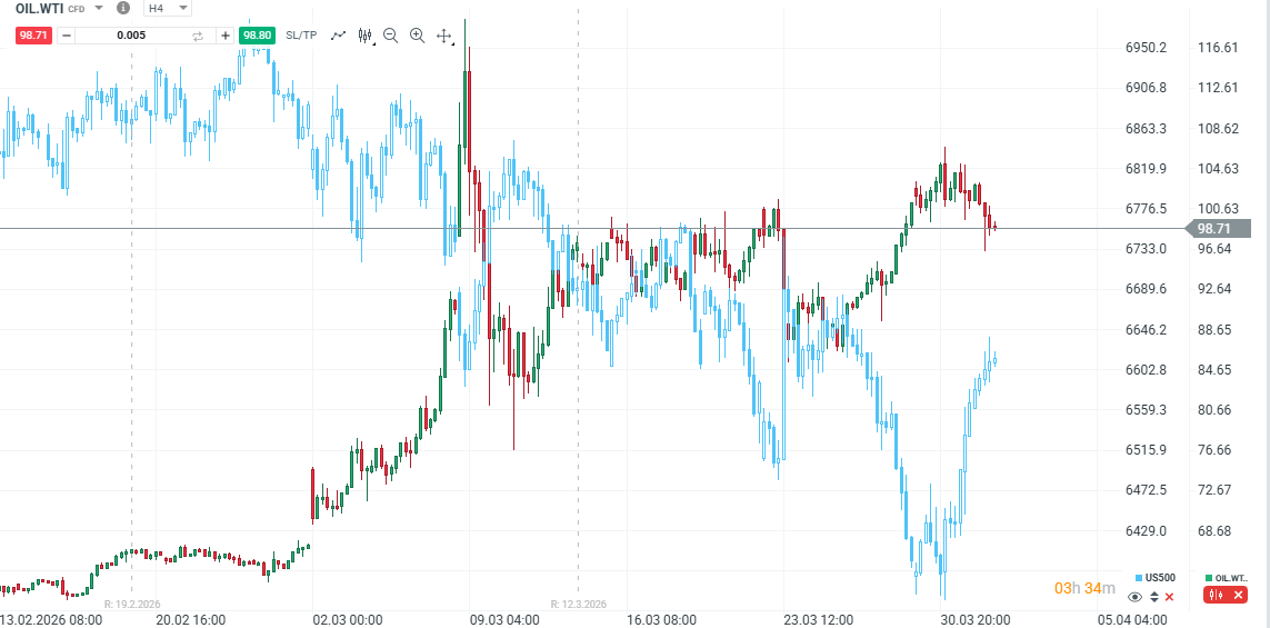 Cena ropy se i přes pokračující napětí drží níže než na lokálních maximech z března, což naznačuje, že investoři stále částečně počítají s tím, že se situace podaří uklidnit dřív, než se naplno přelije do globální ekonomiky. Jinými slovy, v ceně ropy je stále víc naděje na diplomatické řešení než plné započtení rizika dlouhodobého výpadku. Současně ale platí, že jakmile se očekávání míru otřese, ropa umí reagovat velmi rychle. Ve čtvrtek 2. dubna Brent znovu vyskočil nad 108 dolarů za barel poté, co Donald Trump pohrozil pokračováním úderů proti Íránu, pokud nebude průliv znovu otevřen.