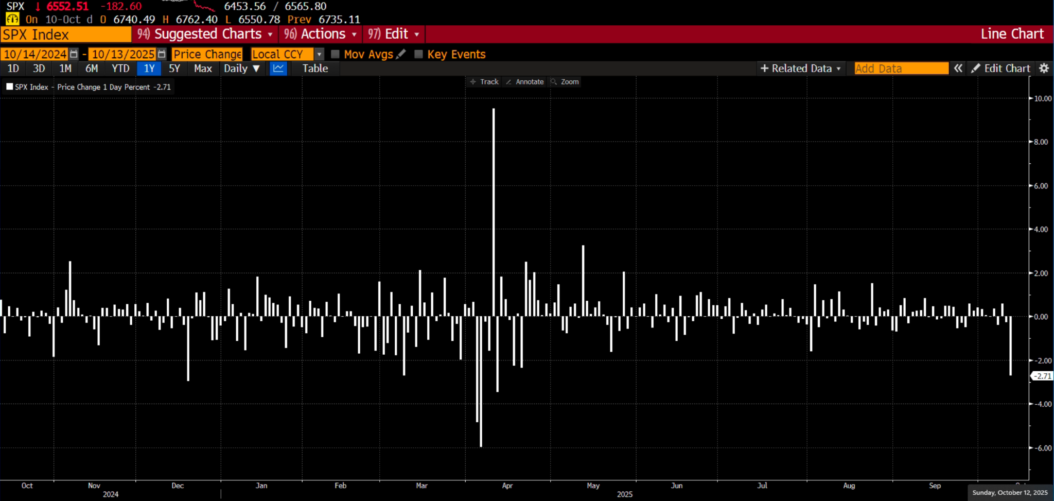 Tento růst byl překvapivě plynulý bez větších korekcí či propadů. To se ale změnilo na konci minulého týdne, kdy během několika hodin S&P 500 oslabil o 2,7 % a Nasdaq o 3,5 % – šlo o největší jednodenní pokles od dubna letošního roku.