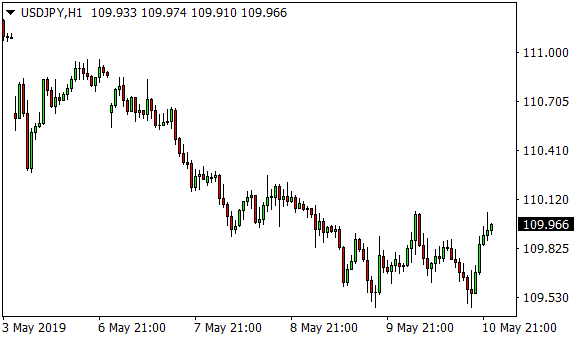 Vývoj měnového páru USD/JPY (1hodinový graf – H1):