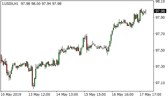 Vývoj dolarového indexu USDX (1hodinový graf - H1):