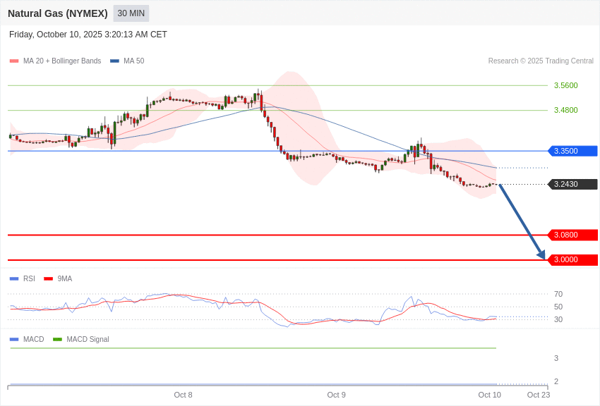 Zemní plyn (NYMEX) - Intradenní výhled 10.10.2025