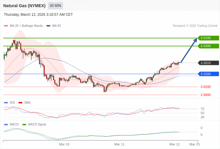 Zemní plyn (NYMEX) - Intradenní výhled 12.3.2026