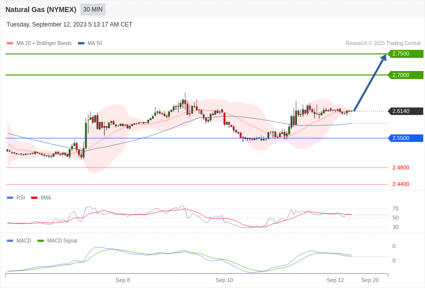 Zemní plyn (NYMEX) - Intradenní výhled 12.9.2023