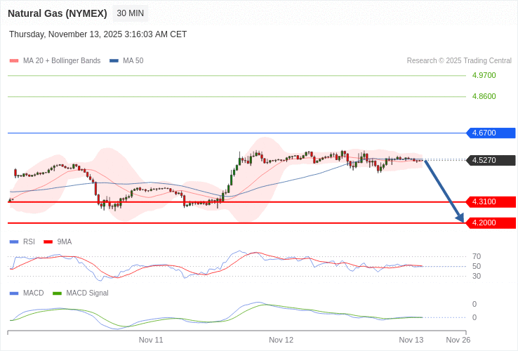 Zemní plyn (NYMEX) - Intradenní výhled 13.11.2025