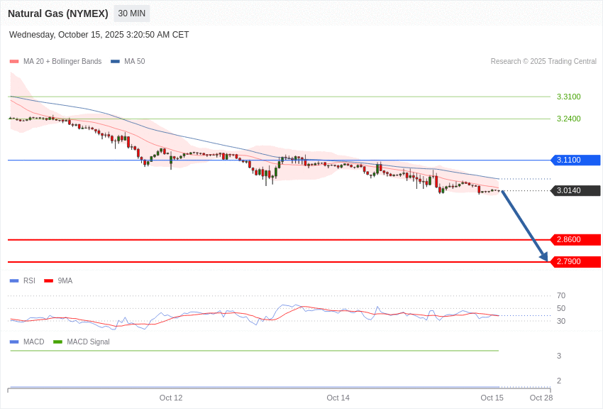 Zemní plyn (NYMEX) - Intradenní výhled 15.10.2025