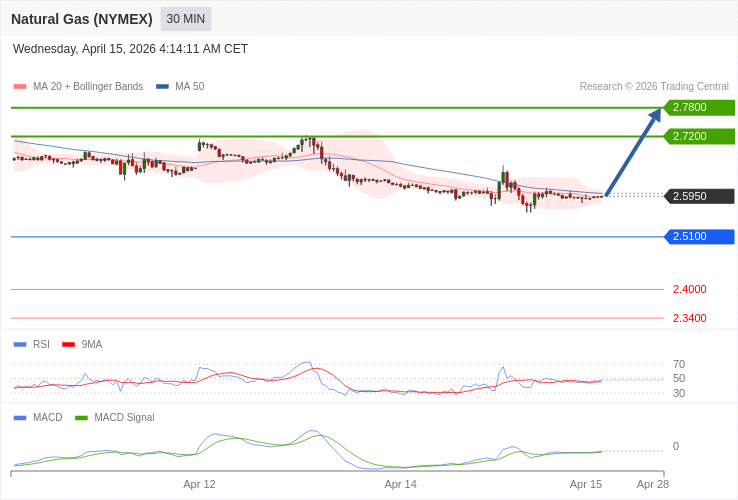 Zemní plyn (NYMEX) - Intradenní výhled 15.4.2026
