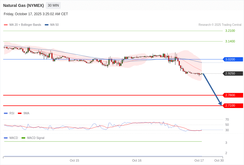 Zemní plyn (NYMEX) - Intradenní výhled 17.10.2025