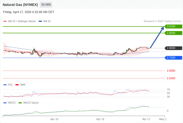 Zemní plyn (NYMEX) - Intradenní výhled 17.4.2026