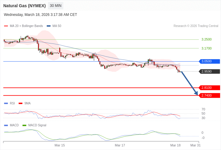 Zemní plyn (NYMEX) - Intradenní výhled 18.3.2026