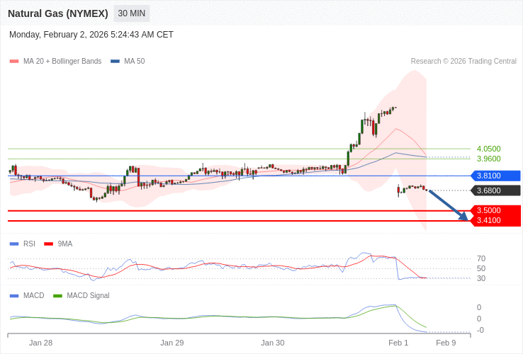 Zemní plyn (NYMEX) - Intradenní výhled 2.2.2026