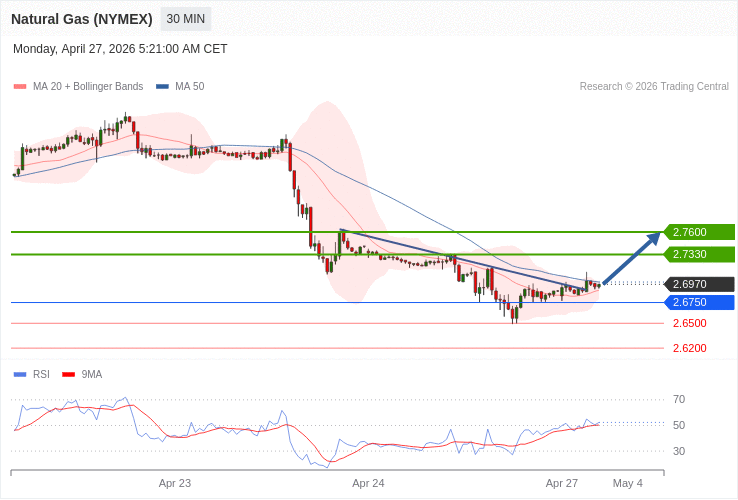 Zemní plyn (NYMEX) - Intradenní výhled 27.4.2026