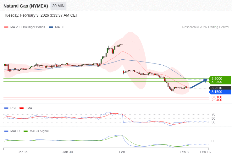 Zemní plyn (NYMEX) - Intradenní výhled 3.2.2026