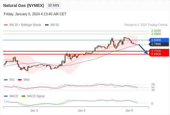 Zemní plyn (NYMEX) - Intradenní výhled 5.1.2024