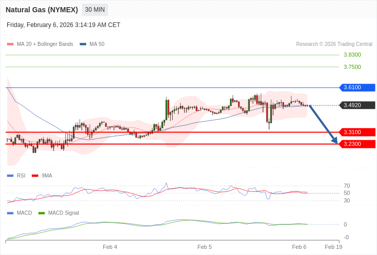 Zemní plyn (NYMEX) - Intradenní výhled 6.2.2026